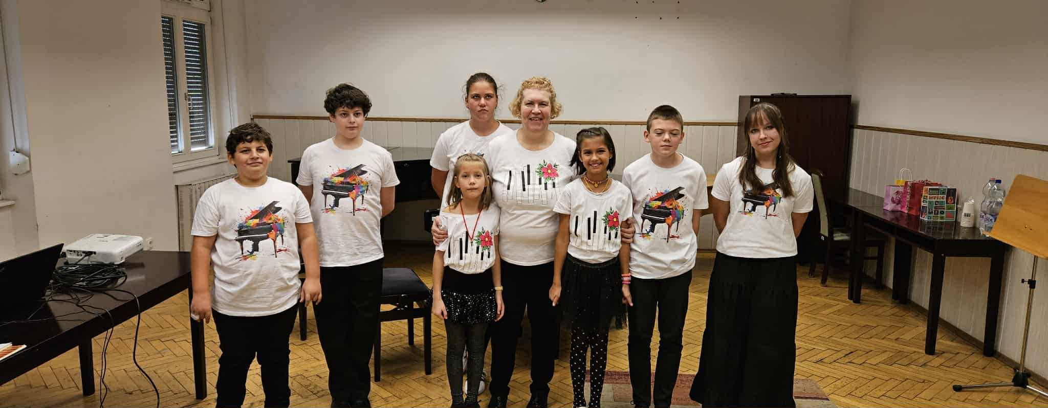 Az előadás közreműködői a tanárnő saját zongorista növendékei voltak: Apostagi Johanna, Apostagi Kincső, Cseh Sebestyén, Kéri Enet, Szilágyi Krisztián, Tihor Flórián és Vereczkei Boglárka. A kezdés előtt egy mini kakaó-koncertté változott a hangulat, amikor a csípős reggel enyhítésére a vendéglátók meleg kakaóval kínálták fellépőinket.