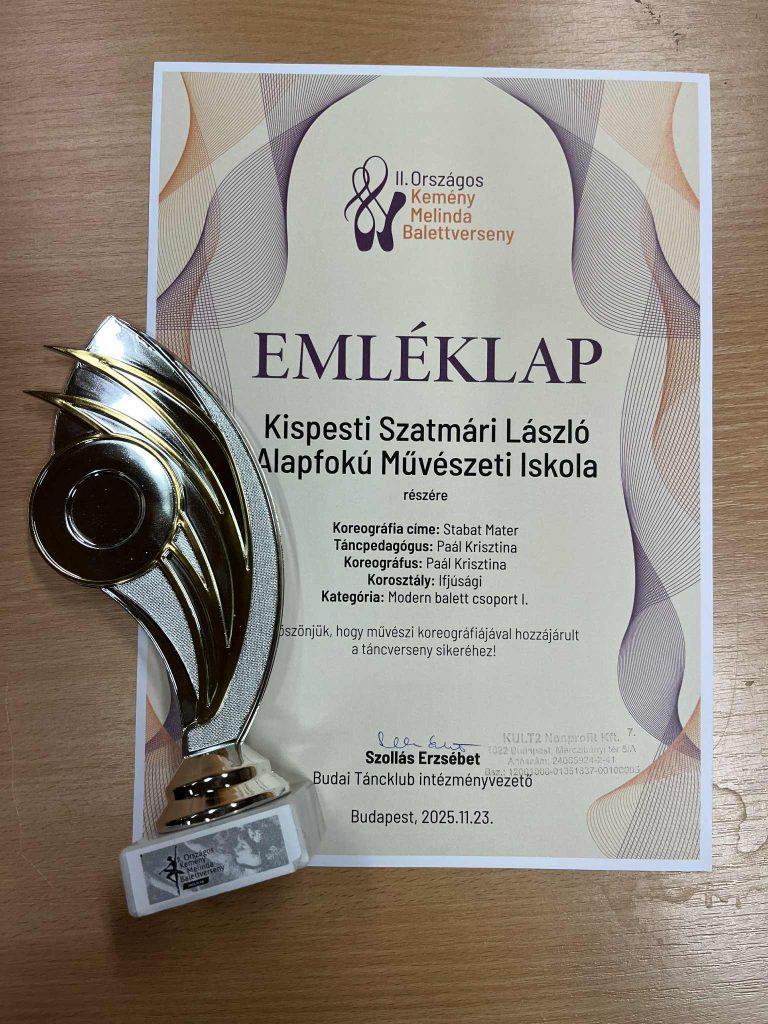 2025. november 23-án került megrendezésre a II. Országos Kemény Melinda Balettverseny. A Kispesti Szatmári László Alapfokú Művészeti Iskola továbbképzős balettos növendékei, modern balett kategóriában II. helyezést értek el. Stabat Mater című koreográfiájukat Paál Krisztina tanárnő készítette.