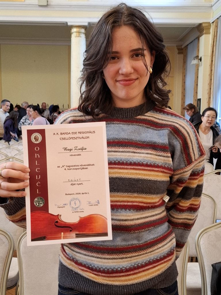 - Bagi Zsófia IV. A. kategóriában Ezüst díjat kapott – tanára: Dikáczné Kanfi Gabriella,