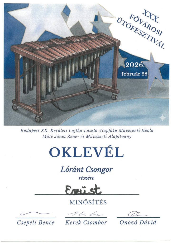 2026. február 28-án rendezték a XX. Kerületi Lajtha László Alapfokú Művészeti Iskolában a XXX. Fővárosi Ütőfesztivál. A Kispesti Szatmári László Alapfokú Művészeti növendékei szóló és duó kategóriában indultak a versenyen, ahol szép eredményeket értek el: